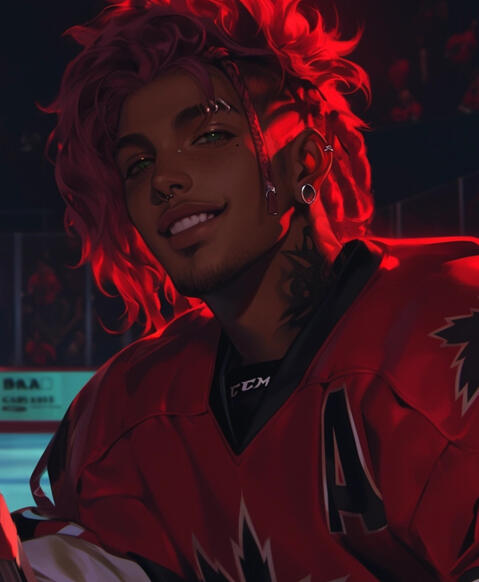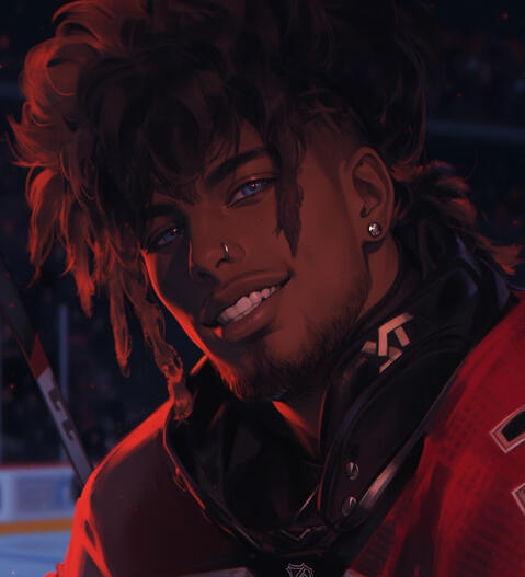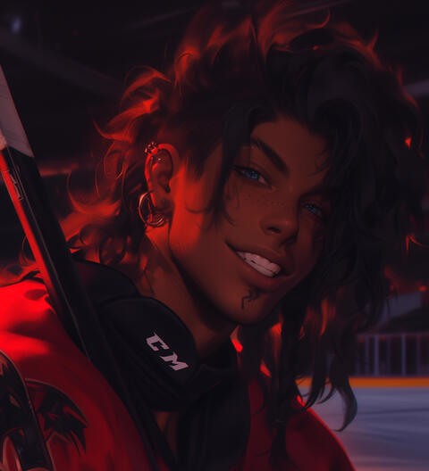 The titled 'Pride' of the Lions. Dominic's the star and center of the team as he is the son of a senior hockey player, Kwame Rivera. Dominic is the most mature of the team and takes it to heart when things don't work out the way it's suppose to with his team. Becoming the center and captain was practically given to him without him really putting the effort into it, much to his own annoyance. Despite all, Dominic is a man that strives to prove he is more than the son of a Rivera. Admittedly, the pressure that comes with being the captain Is making this....difficult, especially with his parents.